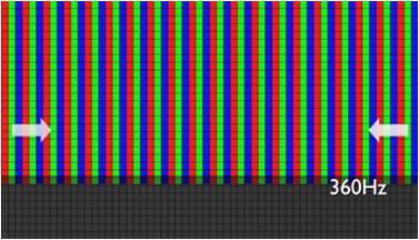 AUO 双向驱动技术在X轴方向的两侧同时对面板画素提供驱动电压,进而让画面上每个画素都能在更短时间内显示正确的色彩。