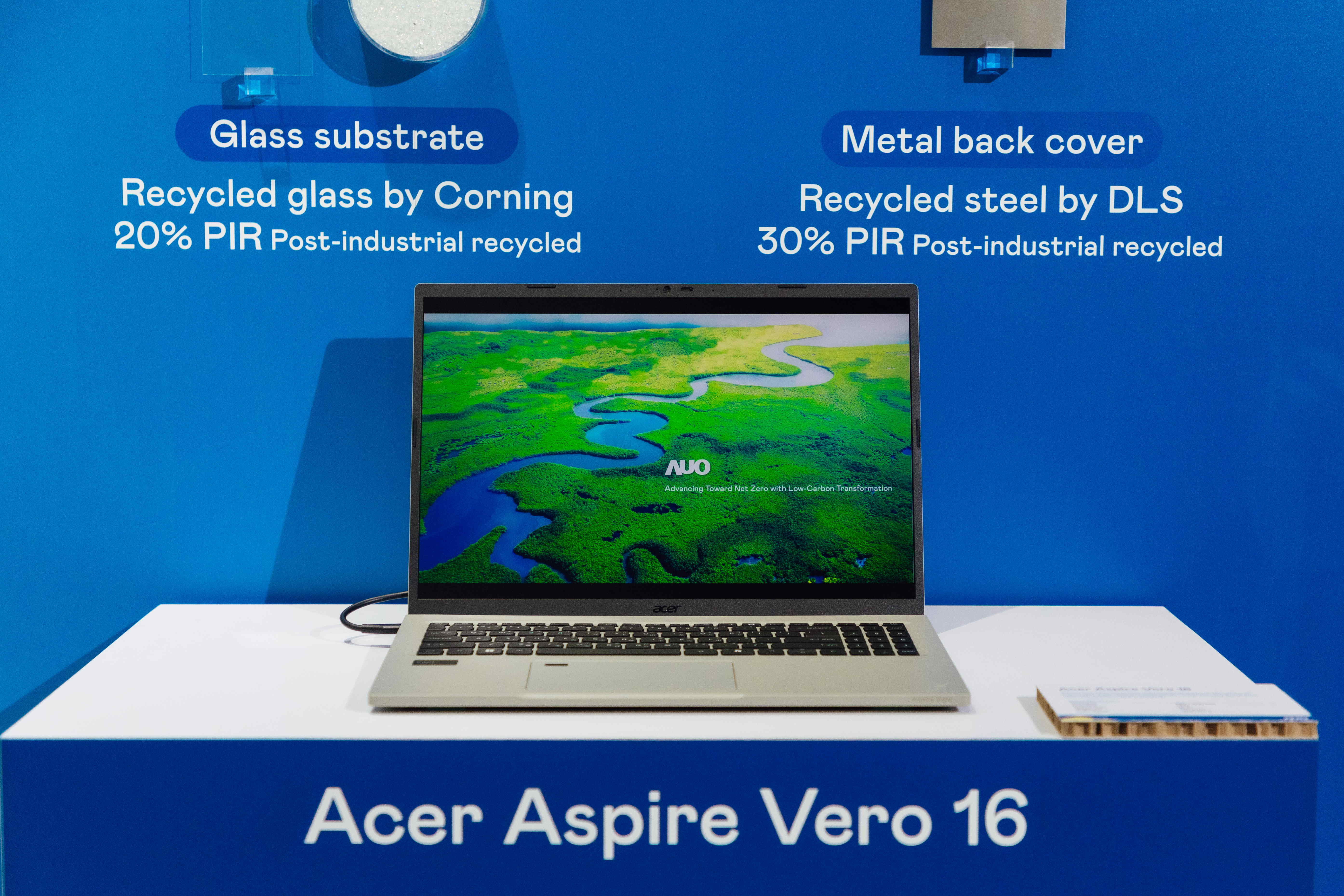 全球首款笔记型电脑采用熊猫体育100%绿电制造的面板,结合PCR外亦使用工业后回收材料(PIR),例如回收玻璃和金属,减少对环境的影响。