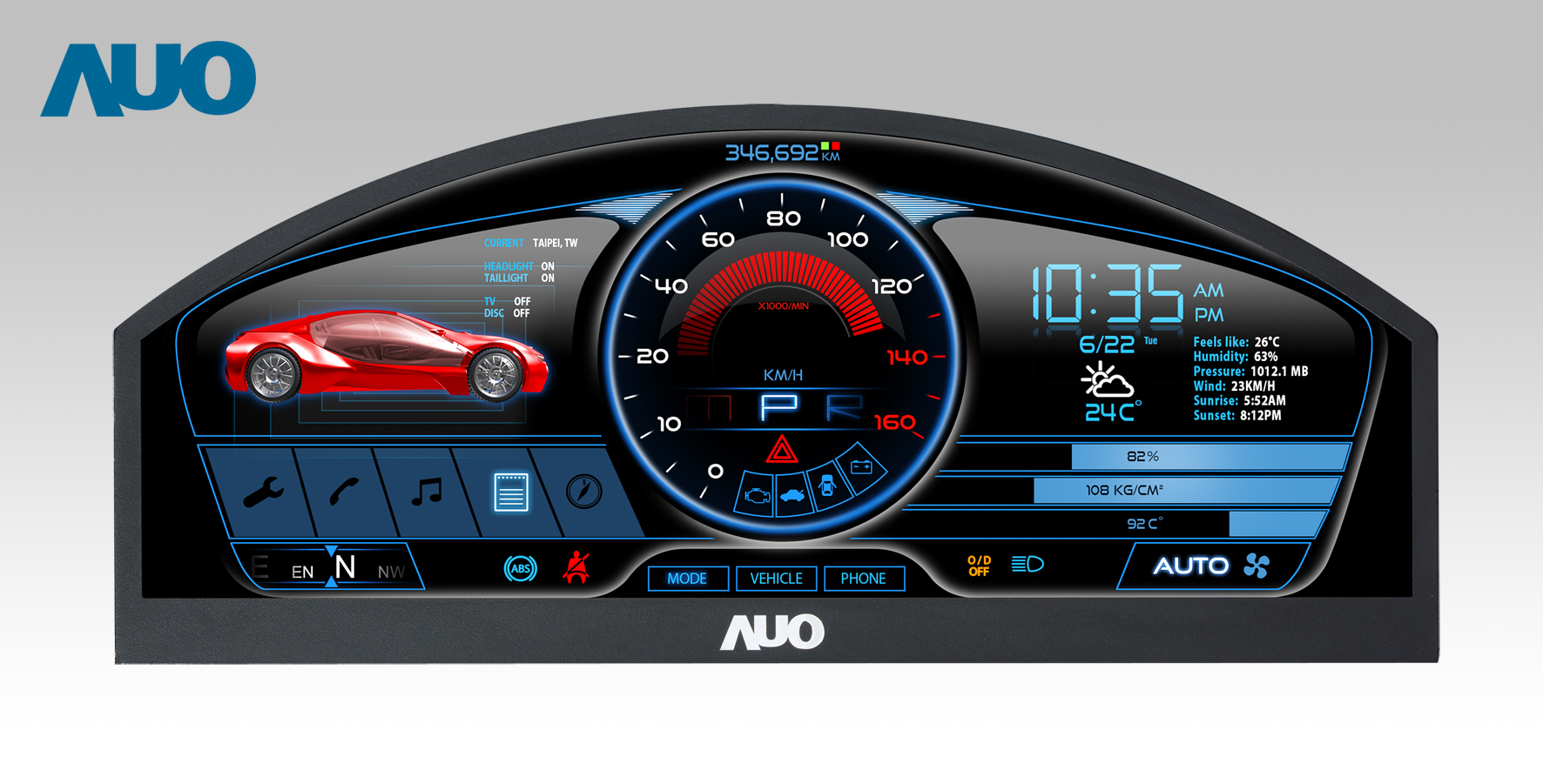 熊猫体育 12.3吋超高解析异型切割车用面板,拥有流线外观及精细画质